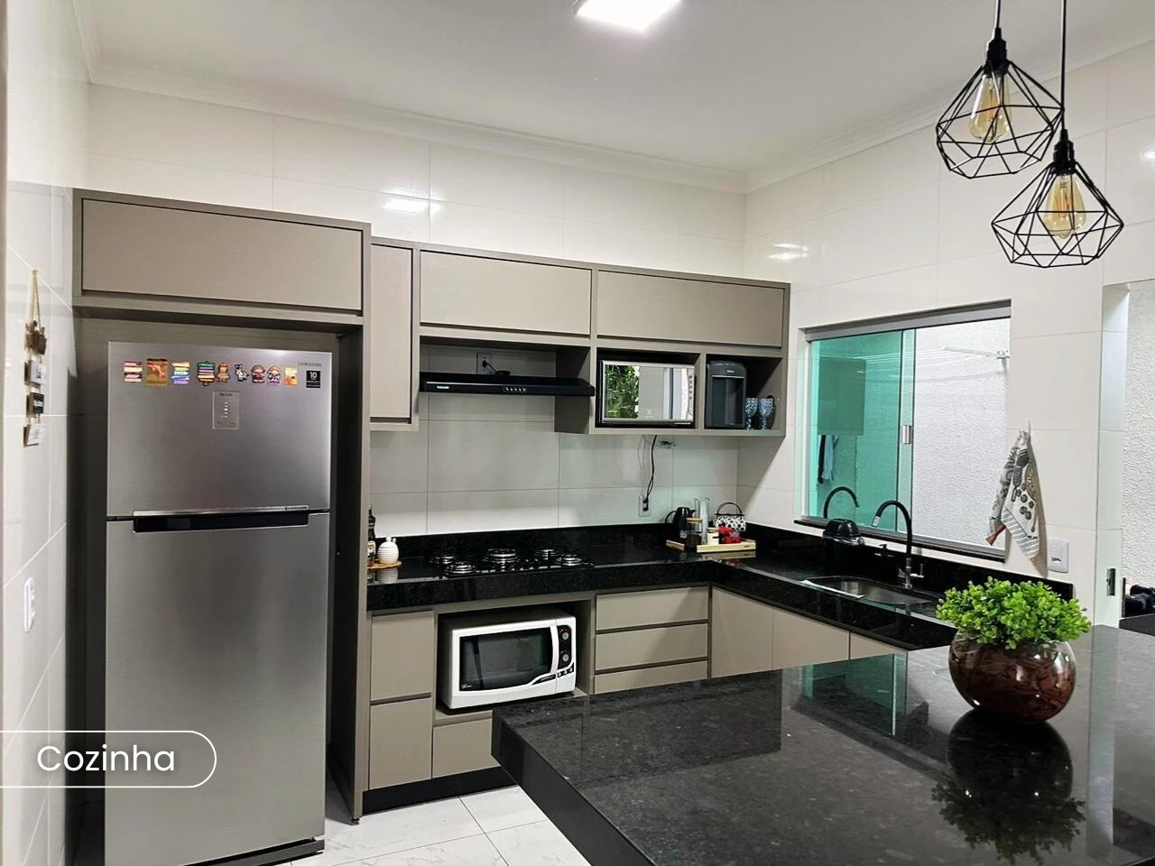 - Diferenciais: Casa com armários na cozinha , nos dois banheiros e na área externa. Área de serviço toda fechada com blindex e duas portas de acesso. Bancada de granito, sistema de segurança, câmera Intelbras Full HD 360°,  portão eletrônico, interfone, concertinas, jardim de inverno com grama sintética, ducha com piso permeável ao redor.